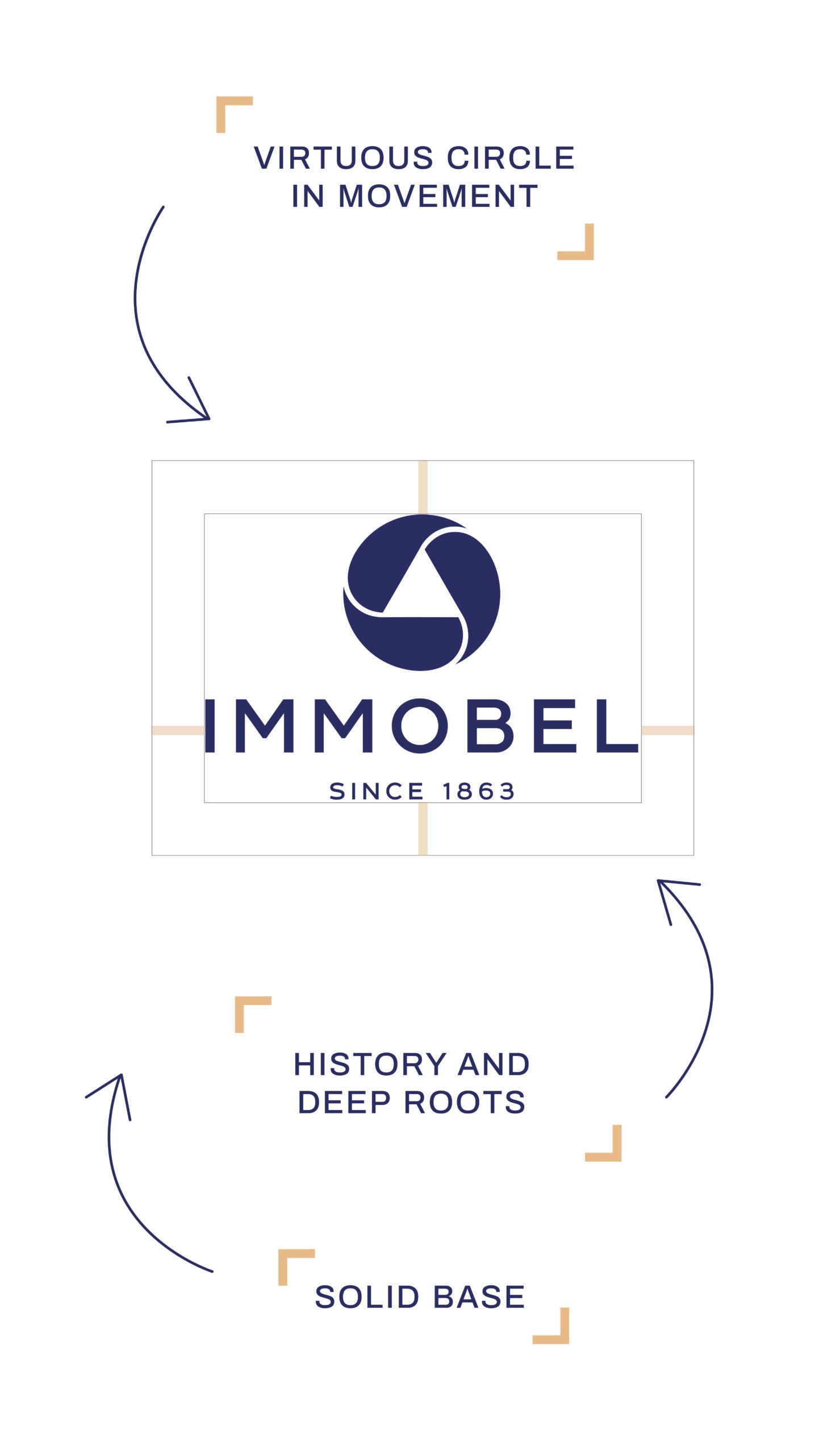 The logo should always be surrounded by a clear space, known as a protection area, the size of the “I” in Immobel. The space between the symbol, the name and the founding date corresponds to half the “I” in Immobel.
